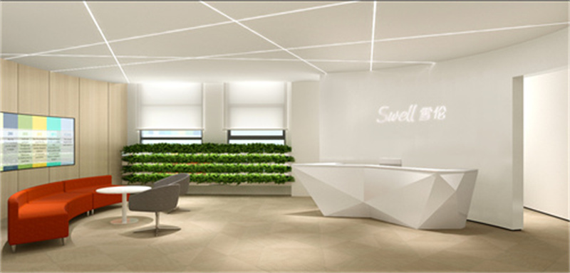 現代簡約風格:普遍適用于中小企業。主要以造型流暢、簡單大方,利用光和影的應用效果在較小的空間內制造變化,用燈光突出公司logo,在線條和光影變幻之間尋找對心靈的沖擊。
