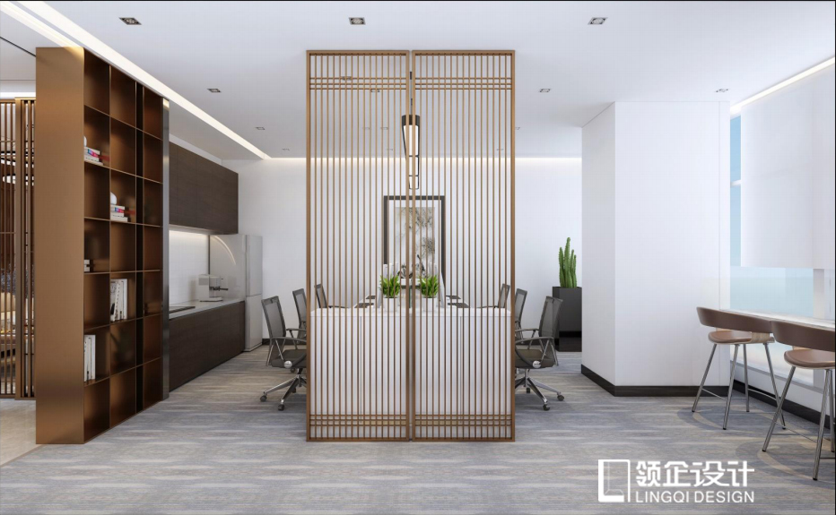 以銀、白、灰為基調(diào),方正硬朗、棱角分明的吊頂和幕墻,凸顯機(jī)械企業(yè)的陽(yáng)剛主題;整個(gè)會(huì)議室用綠植裝飾,給這種陽(yáng)剛之氣帶來(lái)一些溫暖,增添了一些獨(dú)特的情趣。