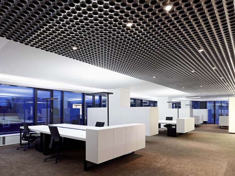 以做吊頂造型,開敞空間可以做局部吊頂增加設計感,辦公室采用中檔裝修往往是穩中發展型的企業,所以能讓企業員工更好的快樂工作,給他們一個更好的環境還是有必要的。